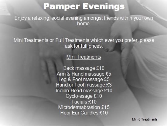 *** More than 10 People receiving a treatment at your pamper party will mean the host recieves their treatment free***